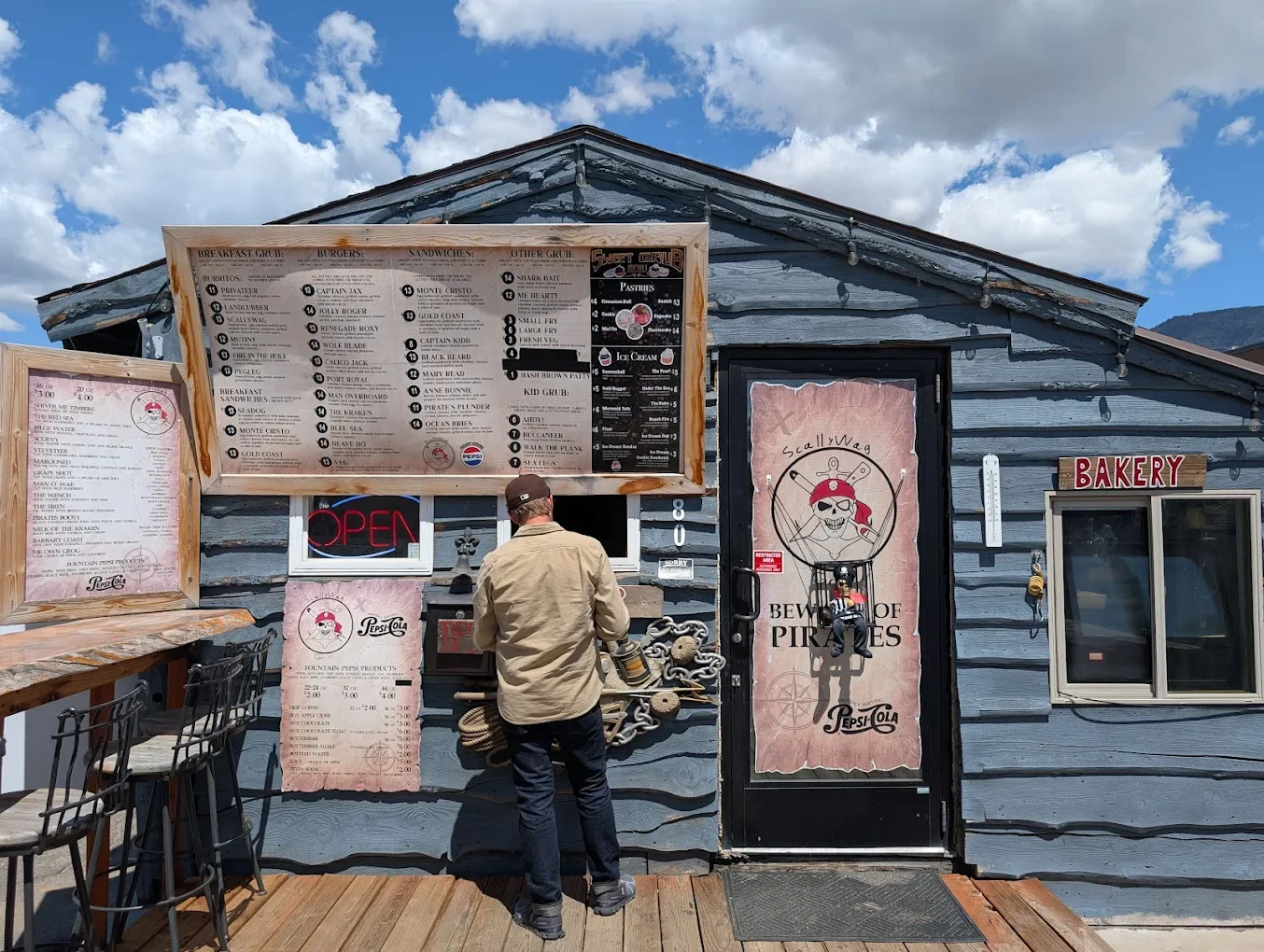 Pirate-chic eatery for burgers and fries, plus breakfast burritos and grilled cheese.
